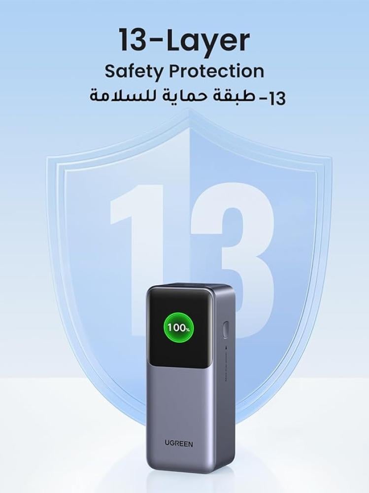 شاحن متنقل يوجرين نيكسود 20000 بقوة 130 واط بمنفذين PD ومنفذ USB رمادي