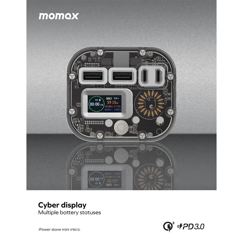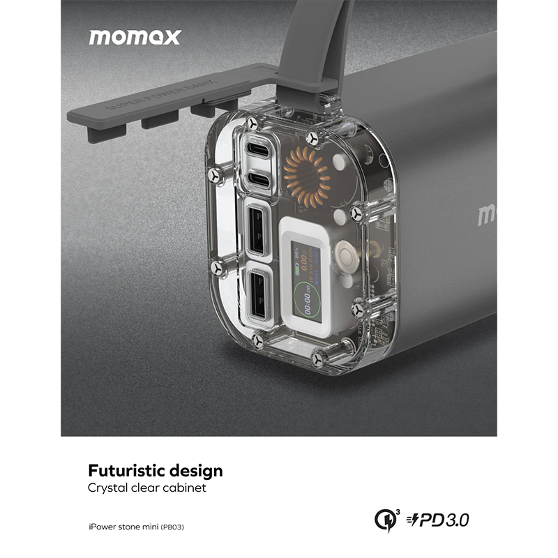 - تصميم شفاف: استمرار للتصميم الجمالي الصناعي لـ Momax