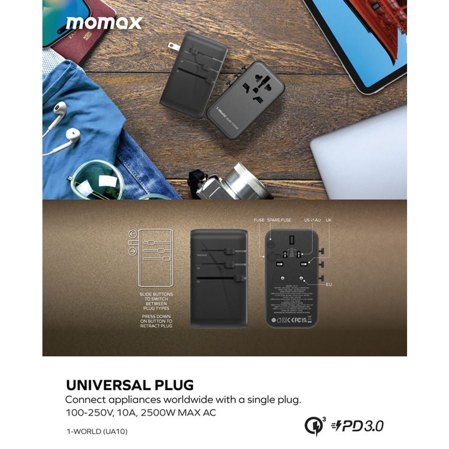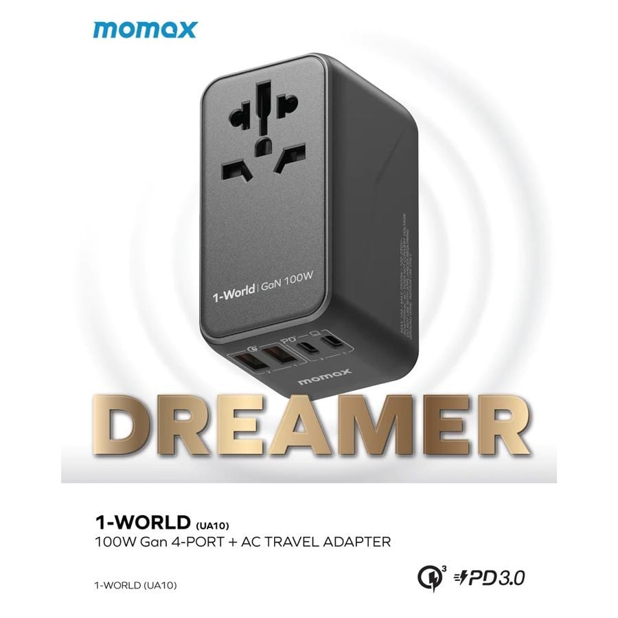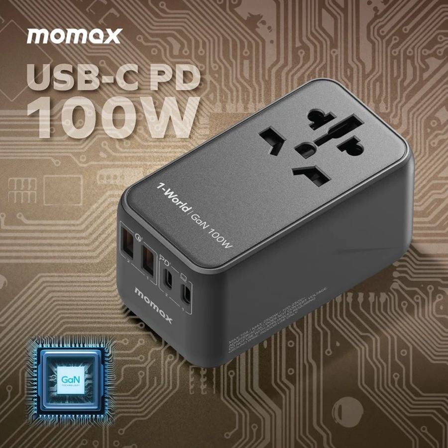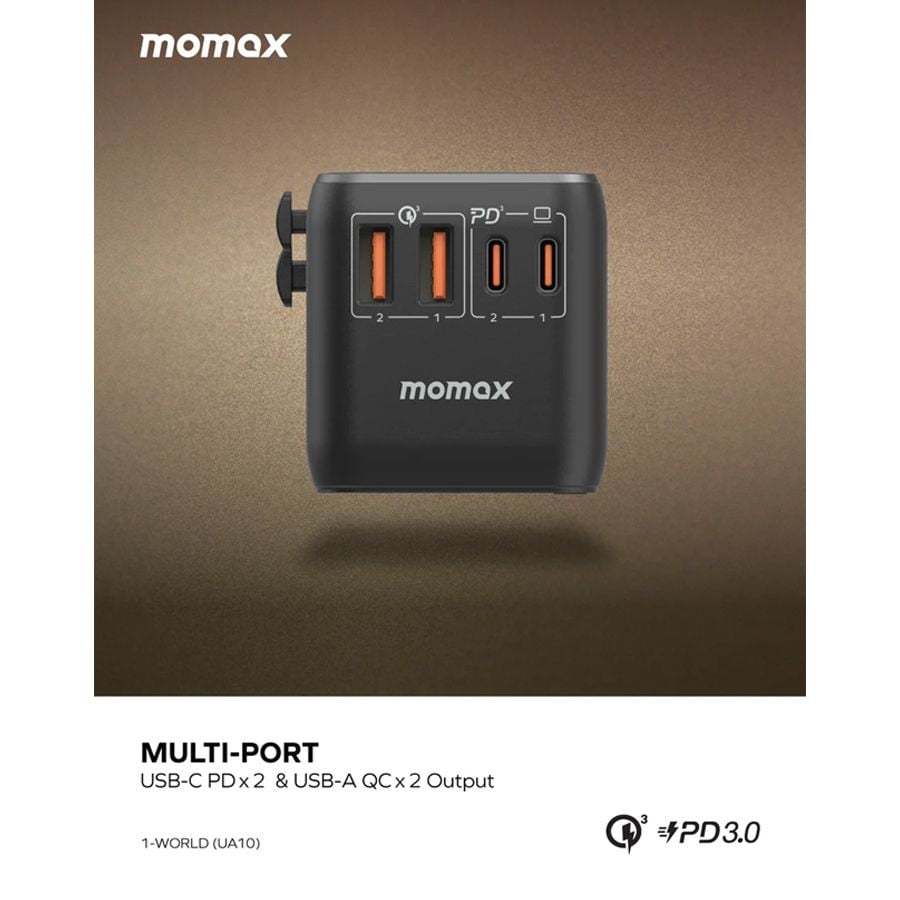 شاحن جداري وللسفر موماكس 4 منافذ وبقوة 100 واط - أسود