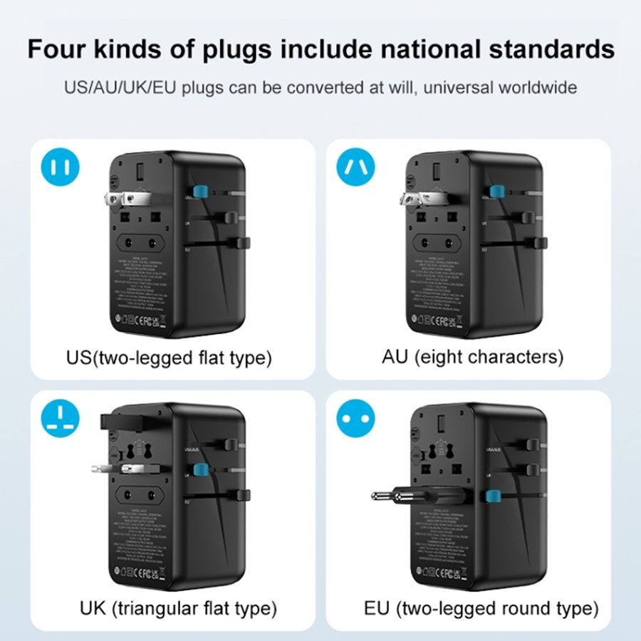 - مقبس متعدد: JP/US، AU، EU، UK تنطبق على أي وجهات السفر