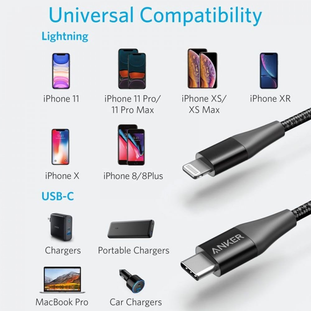 كيبل أنكر لايتننج أبل تايب سي باور لاين بلس الاصدار الثاني 1.8 متر أسود