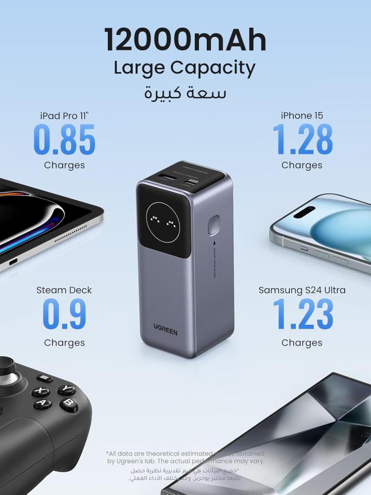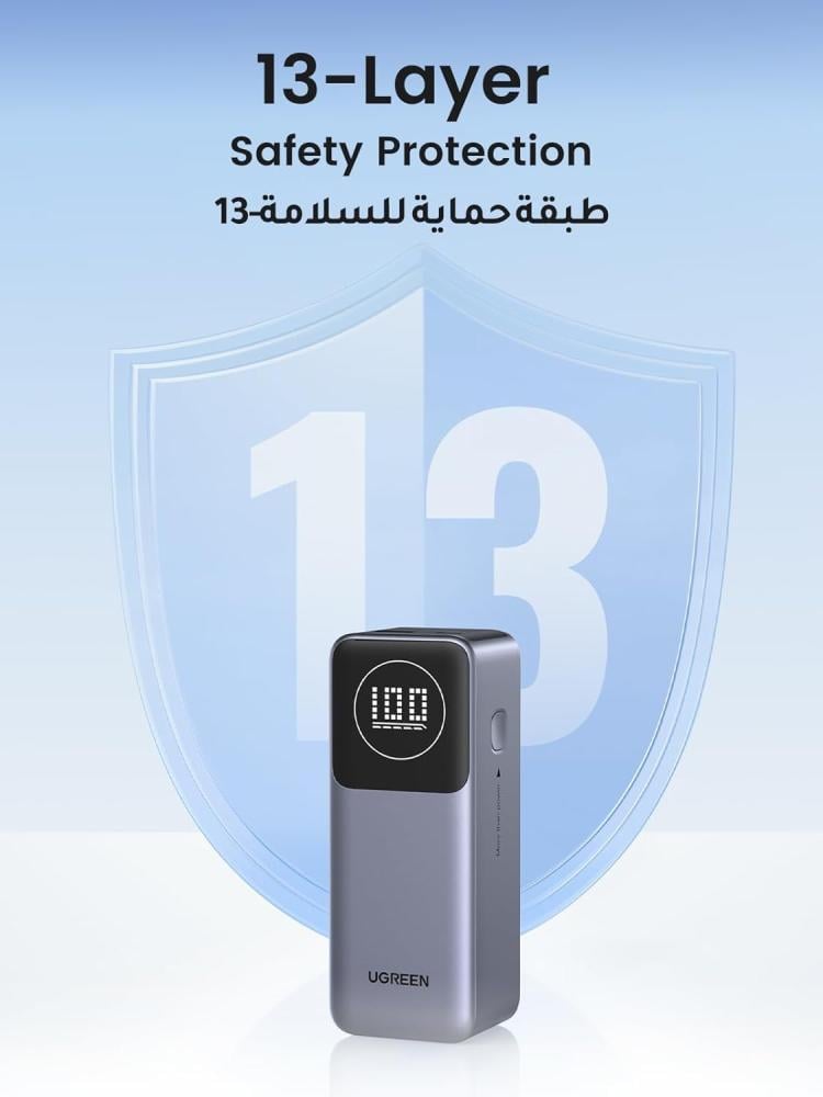 - 【إخراج فائق السرعة 100 واط】استمتع بعمليات تشغيل سريعة مع بنك الطاقة يوجرين، والذي يقوم بشحن جهاز ايباد برو M4 إلى 40% في 30 دقيقة فقط أو تعزيز جهازآيفون 15 إلى ما يصل إلى 60%، في الحالات العاجلة، فإنه يوفر طاقة مؤقتة لأجهزة الكمبيوتر المحمولة، قادر على شحن جهاز ماك بوك برو 16 بوصة إلى 43% في نصف ساعة فقط، طاقة موثوقة متى وأينما كنت في حاجة إليها.