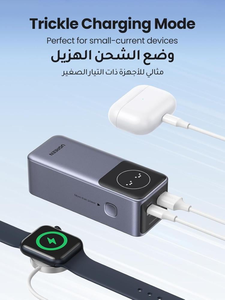 - 【توافق واسع】يمكن لبنك بطارية يوجرين التعامل مع مجموعة متنوعة من بروتوكولات الشحن، بما في ذلك PD وPPS وQC وAFC وFCP وSCP، مما يجعله متوافقًا مع مجموعة واسعة من الأجهزة؛ بالإضافة إلى ذلك، فهو مصمم أيضًا للأجهزة الصغيرة مثل ايربودز والساعات الذكية وما إلى ذلك.