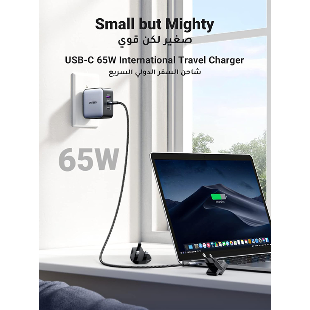 - يمكن ارتداؤه بسهولة في جميع انحاء العالم: يتيح لك شاحن السفر الدولي نيكسود 65 واط من يوجرين الاستخدام في جميع أنحاء العالم تقريبًا مع قابس أمريكي/بريطاني/أوروبي.