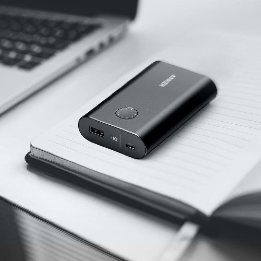 شاحن متنقل أنكر باور كور بلس 10050 مخرج واحد بتقنية IQ و QC3.0 فضي