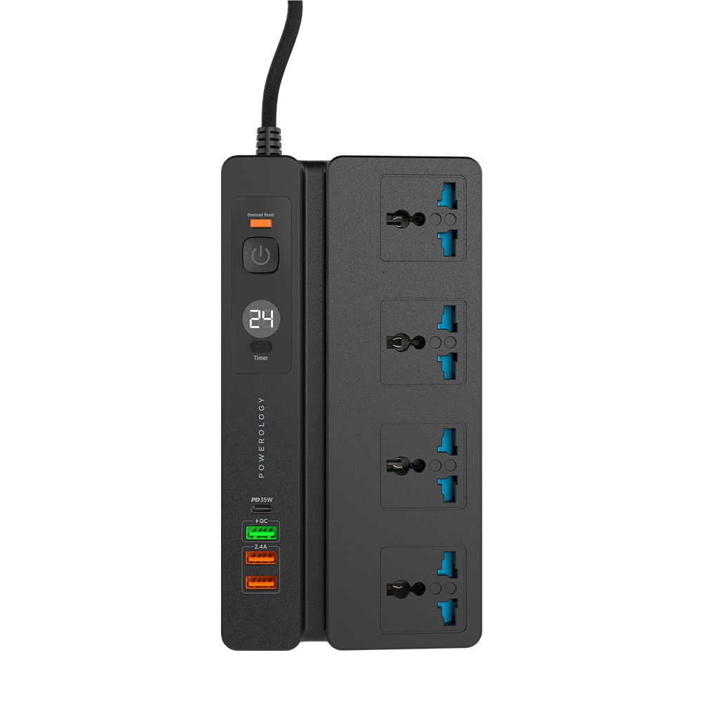 توصيلة باورلوجي 2 متر ب 4 منافذ كهربائية و 3 مداخل يو اس بي ومدخل تايب سي