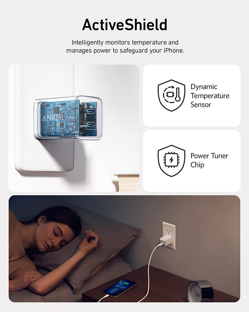شاحن أنكر جداري 40 واط مخرجين بتقنية PD أبيض